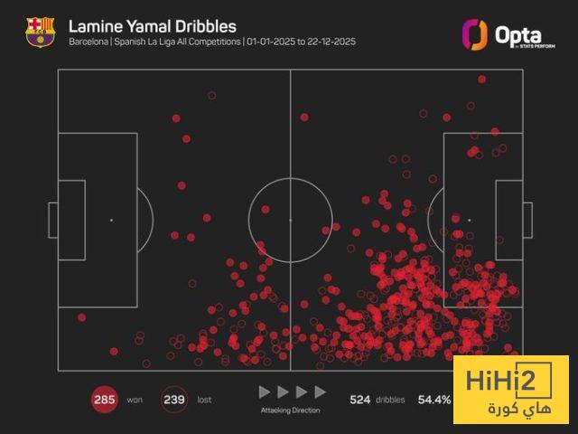 هاي كورة – كشف موقع أوبتا للإحصائيات أنه لا يوجد لاعب في الدوريات الخمس الكبرى وفي جميع المسابقات أكمل مراوغات أكثر من لامين يامال في سنة 2025.