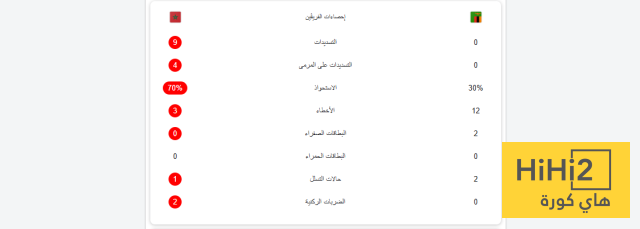 هاي كورة: تفوق منتخب المغرب بشكل واضح في إحصائيات الشوط الأول أمام زامبيا، حيث سيطر على مجريات اللعب وفرض إيقاعه في جميع فترات المباراة. ونجح لاعبو “أسود الأطلس” في السيطرة على الكرة.
