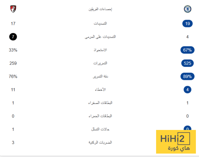 احصائيات مباراة تشيلسي و بورنموث في الدوري الانجليزي