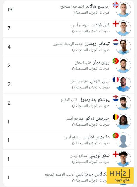 وجاءت قائمة هدافي مانشستر سيتي كالتالي :