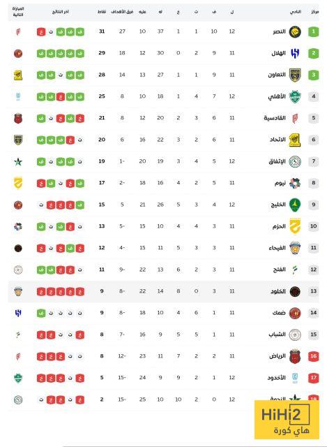الهلال بـ 29 نقطة من أصل 33 ، سجل 30 هدفًا واستقبلت شباكه 12 أخرين .
