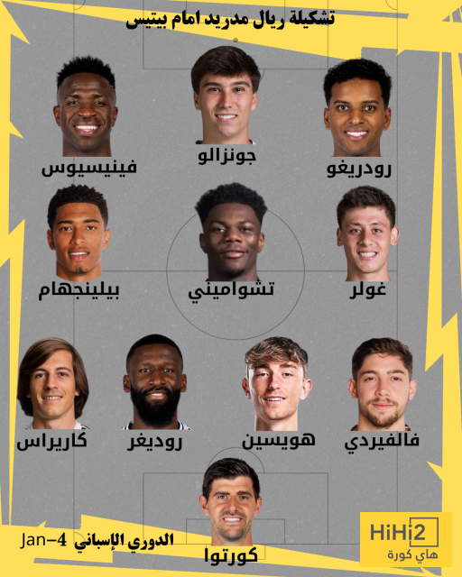 هاي كورة – كشف موقع هاي كورة عن تشكيلة ريال مدريد المتوقعة لمواجهة بيتيس في الجولة الثامنة عشر من الليغا حيث سيلتقي الفريقان مساء غد الأحد وفق التوقيت المدرج في جداول الموقع لكل دولة حول العالم .