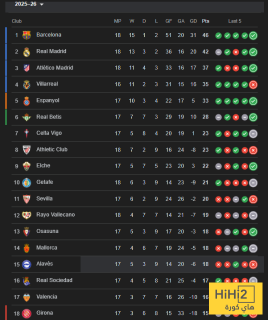 بيتيس في المركز الـ 6 من ترتيب الليغا برصيد 28 نقطة .