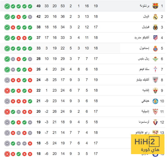 اليكم ترتيب الليغا :