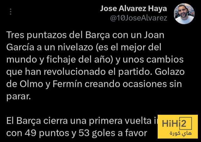 “3 نقاط حاسمة لبرشلونة مع خوان غارسيا الذي تألق بشكل استثنائي، فهو الأفضل في العالم وأفضل صفقة في الموسم”.
