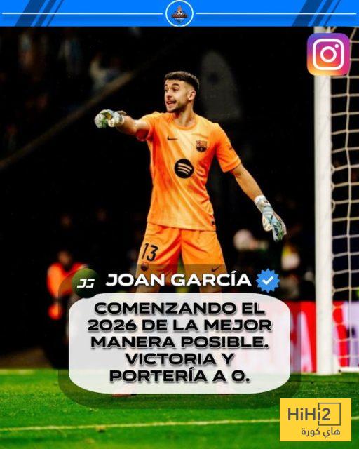 هاي كورة – نشر خوان غارسيا منشورا عبر حسابه على انستغرام إثر فوز برشلونة على إسبانيول في الجولة 18 من الليغا بهدفين دون رد ، جاء فيه ” بداية مثالية لعام 2026 ، انتصار وشباك نظيفة ” .