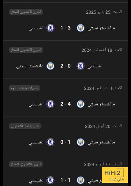 إليكم نتائج أخر 5 مباريات جمعت مانشستر سيتي و تشيلسي :