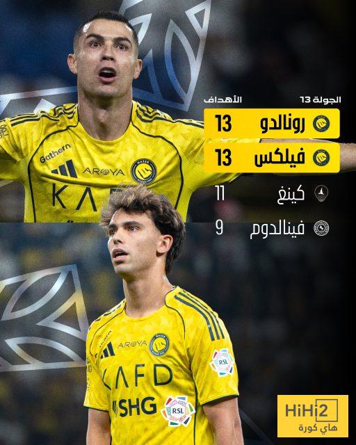 ويواصل النجمين البرتغاليين كريستيانو رونالدو وجواو فيليكس ، ثنائي نادي النصر ، فرض اسميهما في صدارة ترتيب الهدافين حتى الآن .