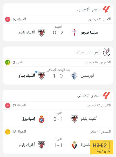وجاءت نتائج بيلباو قبل مواجهة برشلونة كالتالي :