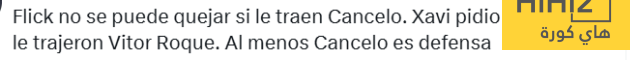 لا يحق لفليك الاعتراض إذا تم التعاقد مع كانسيلو ، طلب تشافي لاعب ارتكاز دفاعي ، فتعاقدوا مع فيتور روكي. على الأقل كانسيلو مدافع .
