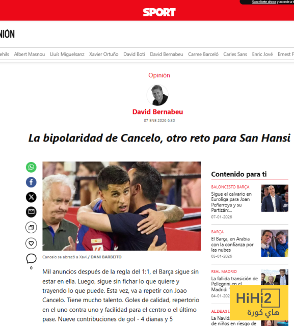 والآن، ينضم اللاعب الذي لم يرضَ يوماً بأن يكون بديلاً إلى فريق مستقر ، حيث يبقى دوره كخيار طارئ غير واضح . مرة أخرى، سيتعين عليهم الاعتماد على لمسة هانز السحرية . لن يكون كانسيلو عام 2023 كافياً لبرشلونة عام 2026 . عليه أن يقدم أداءً أفضل بكثير .