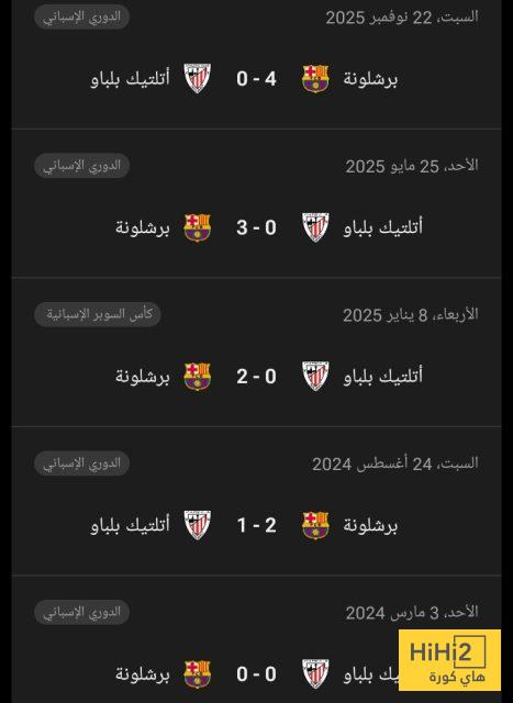 إليكم نتائج أخر 5 مباريات جمعت برشلونة و اتلتيك بيلباو :