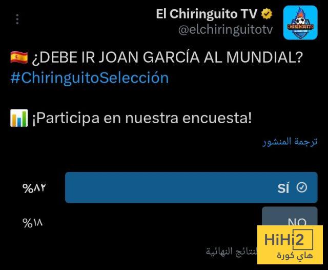 هاي كورة _ استفتاء هام للغاية أجراه برنامج التشيرينغيتو من أجل استطلاع آراء الجماهير، بخصوص موقف خوان غارسيا حارس مرمى برشلونة من المشاركة رفقة منتخب إسبانيا في كأس العالم 2026.