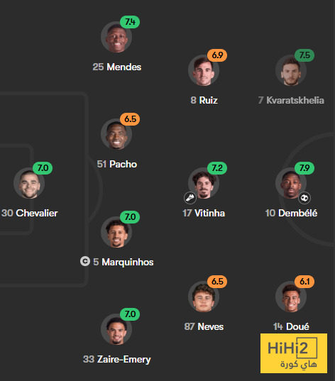 تقييم لاعبو باريس سان جيرمان في الشوط الاول:
