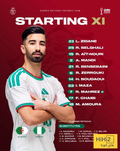 هاي كورة – أعلن فلاديمير بيتكوفيتش عن تشكيلة المنتخب الجزائري التي ستواجه المنتخب النيجيري في الدور ربع النهائي من كأس الأمم الإفريقية.