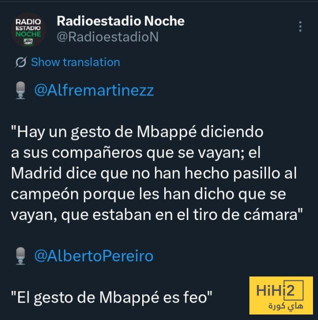 مارتينيز قال : ” كانت هناك إشارة من مبابي يطلب فيها من زملائه أن يبتعدوا ، ريال مدريد يقول انهم لم يقوموا بممر شرفي للبطل لأنهم طلب منهم الإبتعاد ، إذا كانوا داخل إطار التصوير “.