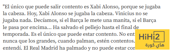 “الشخص الوحيد الذي يحق له أن يكون سعيدًا هو تشابي ألونسو ، لأن وظيفته كانت على المحك ، كنا نقول : ماذا لو سحقهم برشلونة ، ماذا لو اكتسحهم برشلونة ؟ لقد أنقذ نفسه حتى نهاية الموسم . هو الوحيد الذي يحق له أن يكون سعيدًا . لا أفهم أبدًا لماذا تفرح الفرق الكبيرة عندما تخسر . لم أفهم ذلك قط . خسر ريال مدريد، ولا يحق لهم أن يكونوا سعداء.”