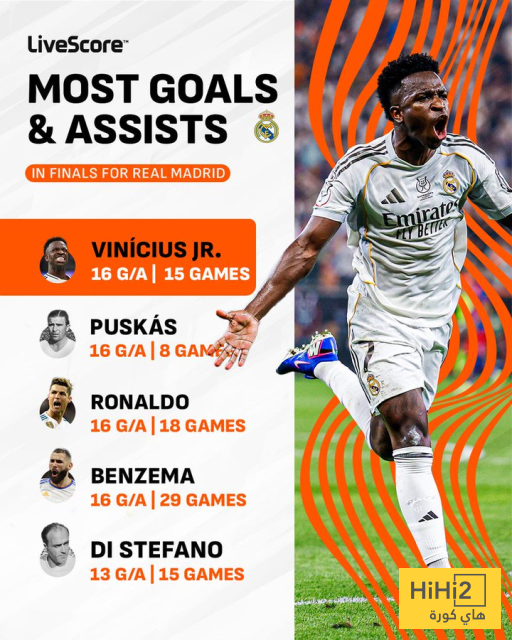 فينيسيوس جونيور اصبح الآن أكثر اللاعبين مساهمة بالاهداف مع ريال مدريد في المباريات النهائية (16 مساهمة) .