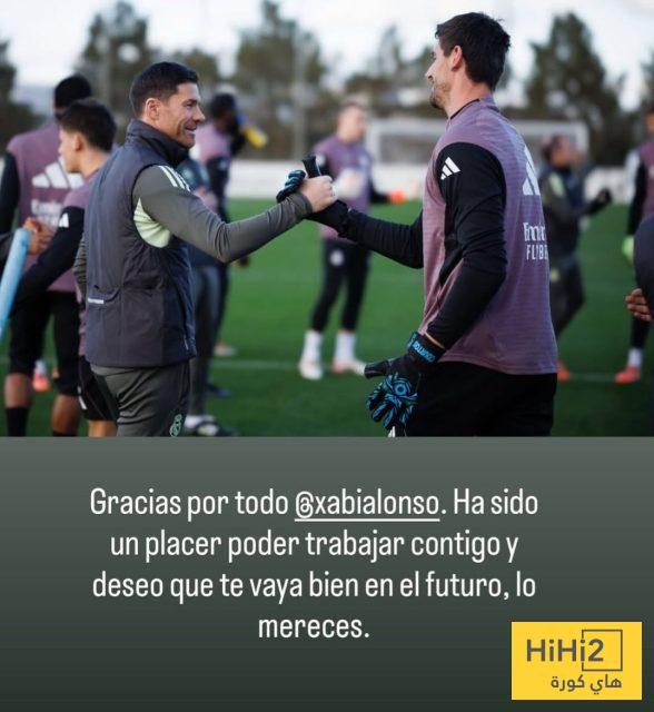 رسالة كورتوا لـ تشابي ألونسو بعد رحيله عن الفريق