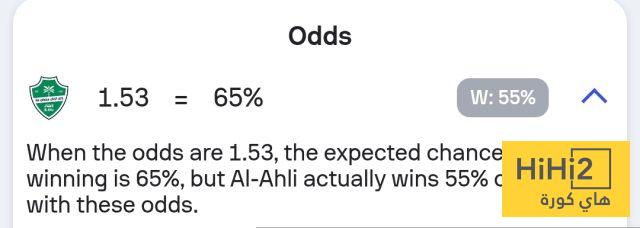نسبة فوز الأهلي في المباراة تصل إلى 55% ، فيما انقسمت الـ 45% المتبقية ما بين التعادل والهزيمة .