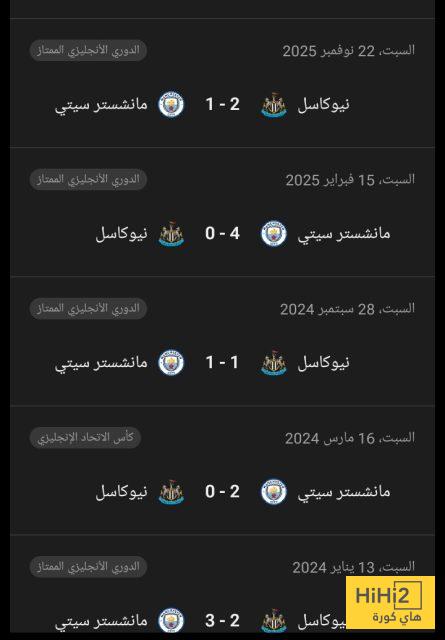 نتائج أخر 5 مباريات جمعت مانشستر سيتي و نيوكاسل