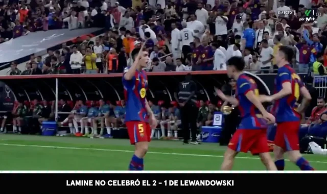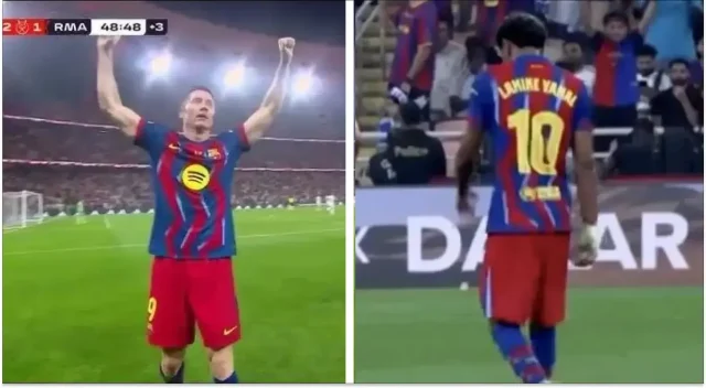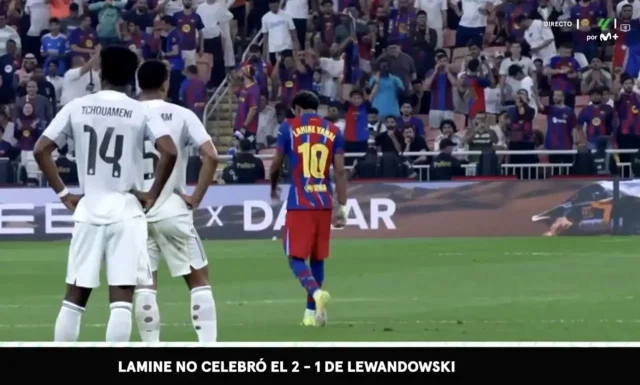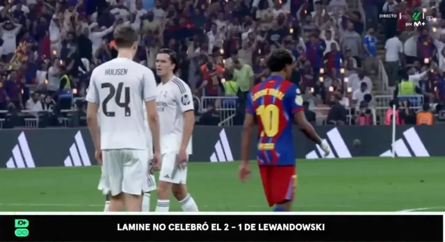 هاي كورة- انتاب جماهير برشلونة الحيرة بعد مشاهدة مقطع فيديو انتشر على نطاق واسع للامين يامال مباشرة بعد هدف روبرت ليفاندوفسكي في كأس السوبر الإسباني .