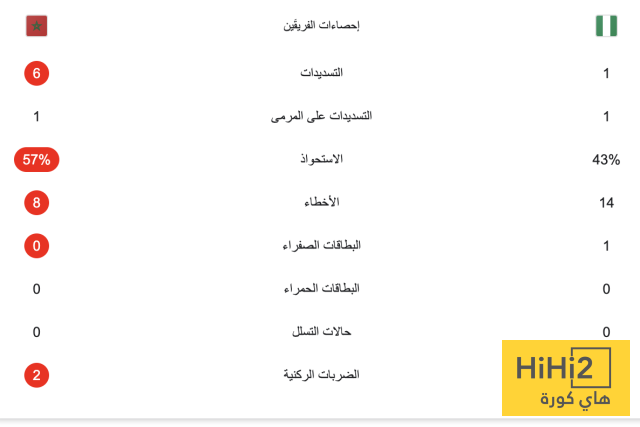 وجاءت إحصائيات الشوط الأول للقاء لتشهد على تفوق أسود الأطلس في كل شيء.