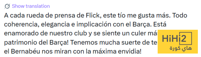 مع كل مؤتمر صحفي، يزداد إعجابي بفليك . إنه ثابت الأداء ، أنيق ، ومخلص لبرشلونة . إنه عاشق للبارسا ، ويشعر وكأنه مشجع حقيقي . إنه بالفعل أسطورة من أساطير النادي ! نحن محظوظون للغاية بوجوده ! ينظرون إلينا بحسد شديد من ملعب سانتياغو برنابيو !