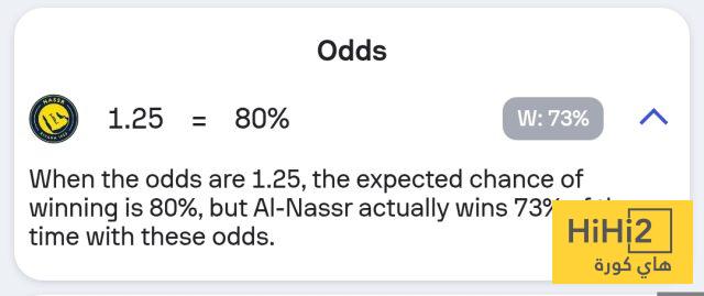 نسبة فوز النصر في المباراة تصل إلى 73% ، فيما انقسمت الـ 27% المتبقية ما بين التعادل والهزيمة .