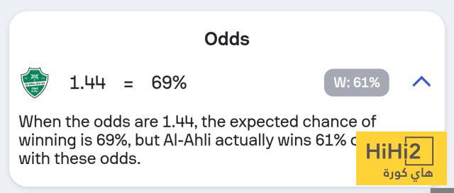 نسبة فوز الأهلي في المباراة تصل إلى 61% ، فيما انقسمت الـ 39% المتبقية ما بين التعادل والهزيمة .