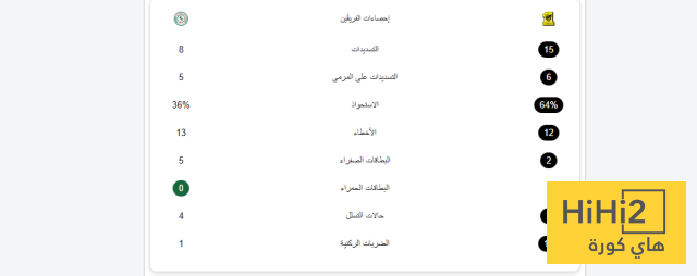 ويظهر هذا التفوق أن الفريق لعب بشكل منظم وقدم أداءً جيداً تكتيكياً، إلا أن الفعالية الهجومية غابت عن لاعبيه، ما منح الاتفاق فرصة استغلال خطأ وحيد وحسم المباراة لصالحه بهدف خالد الغنام في الدقيقة 54.