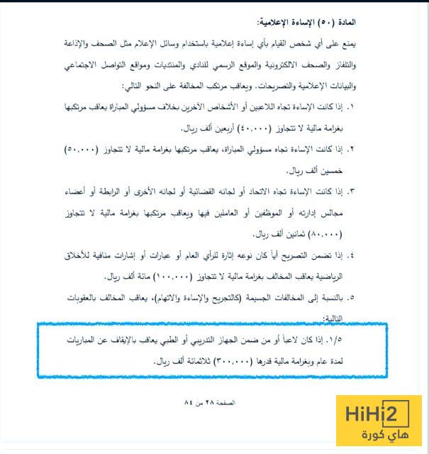 يُظهر نص المادة 50 ، التي تم تداولها ، العقوبات المقررة على أي مسؤول أو لاعب أو مدرب يوجه تصريحات مسيئة أو يُثير الفتنة بين الأندية ، بما في ذلك الإيقاف المالي والزمني .
