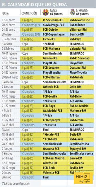 جدول مباريات برشلونة وريال مدريد حتى نهاية الدوري ، مع جولات أسهل على ملعب الريال .