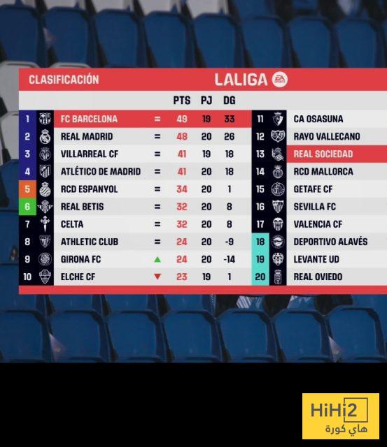 إليكم ترتيب الدوري الاسباني قبل لقاء برشلونة و ريال سوسيداد :