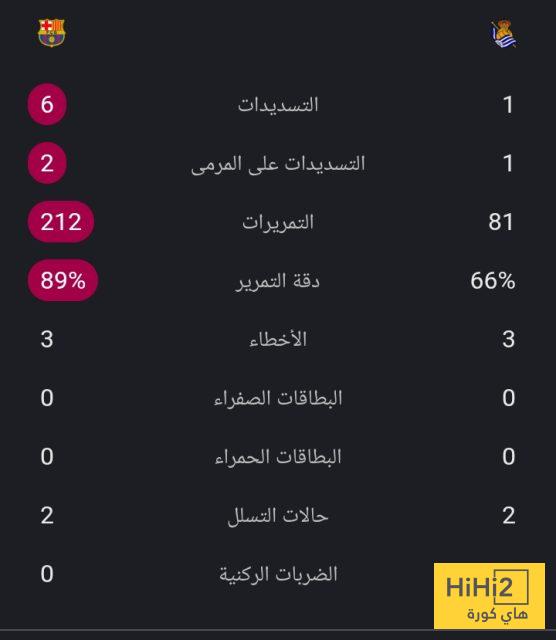 إليكم احصائيات نصف ساعة بين برشلونة و ريال سوسيداد :