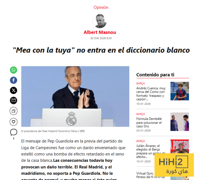 ردا على ذلك ، اختار الرئيس نسخة أخرى لمحاولة إعادة توجيه الوضع . نسخة من مورينيو الذي ، بالضبط ، هو من جسد المواجهة وجها لوجه مع غوارديولا بأفضل شكل ، اربيلوا ، إنه دمية الرئيس التي وضعها في مكان لا يحترمه فلورنتينو كثيرا. مع عبارات فارغة مثل عبارات خوانيتو، أو “أعرف لمن كانت الصافرات” أو “عودة البرنابيو ” أو “كؤوسي الأوروبية”… أربيلوا نسخة سيئة من مورينيو لأن البرتغالي وضع ريال مدريد على ظهره لعدة سنوات.