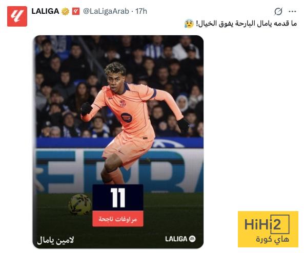 هاي كورة : عقب نهاية اللقاء بين برشلونة وريال سوسيداد نشر حساب الليغا الاسبانيه باللغه العربيه هذا المنشور الموجود في الصوره وقد علق قائلا “ ما قدمه يامال البارحة يفوق الخيال “ .