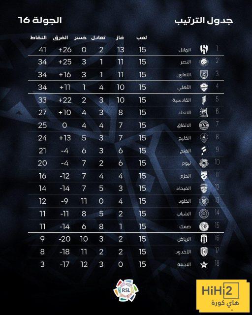 النصر بـ 34 نقطة من أصل 45 ، سجل 42 هدفًا واستقبلت شباكه 17 أخرين .
