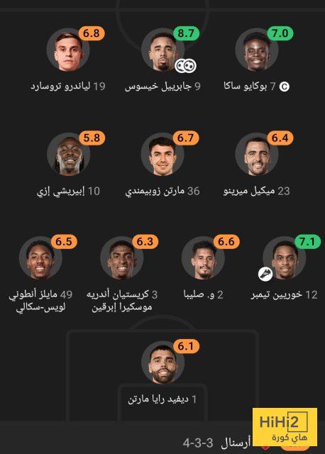 إليكم تقييم أرسنال في الشوط الأول أمام انتر ميلان :