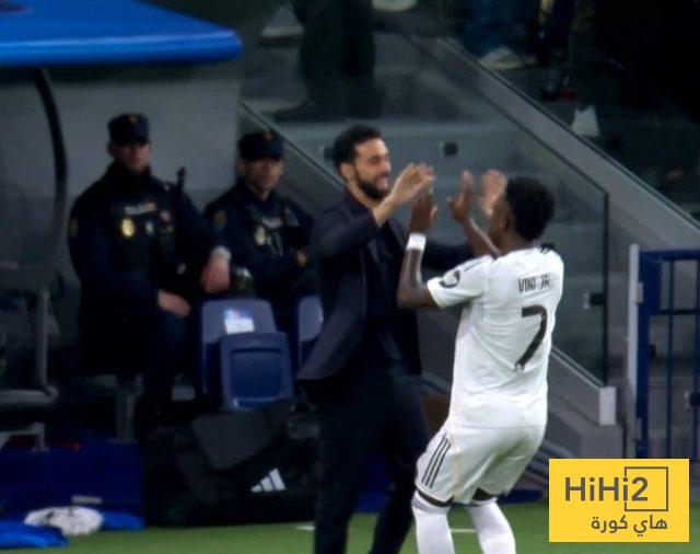 الفارو اربيلوا مدرب الريال صفق لـ فينيسيوس على هدفه وانتظره على خط التماس للاحتفال معه واحتضانه :