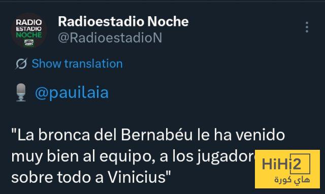 ” غضب جماهير البرنابيو كان في مصلحة الفريق بشكل كبير ، وفي مصلحة اللاعبين ، وبشكل خاص في مصلحة فينيسيوس “.
