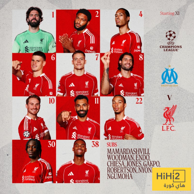 تشكيلة ليفربول الرسمية امام مارسيليا