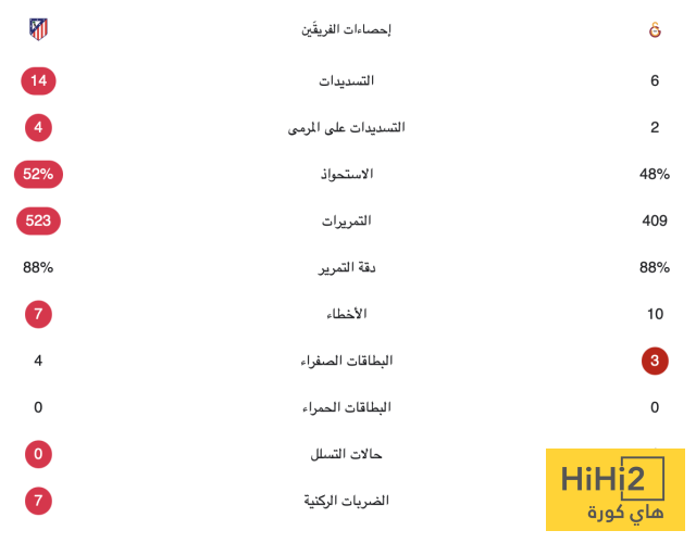 وبتلك النتيجة أصبح رصيد أتلتيكو مدريد 13 نقطة في المركز الثامن بجدول الترتيب العام، بينما أصبح رصيد جلطة سراي 10 نقاط في المركز السادس عشر.