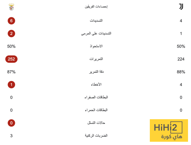 هاي كورة – انتهى الشوط الأول من مباراة يوفنتوس وبنفيكا في الجولة السابعة من دوري أبطال أوروبا.