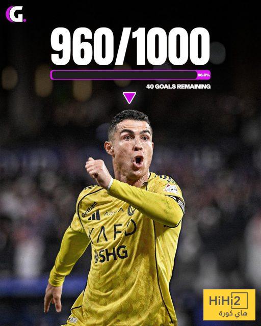 بهذا الهدف ، اقترب النجم البرتغالي ( صاحب الـ 40 عامًا ) من الوصول إلى الهدف رقم 1000 في مسيرته ، وهو إنجاز لم يحققه أي لاعب في تاريخ كرة القدم حتى هذه اللحظة .