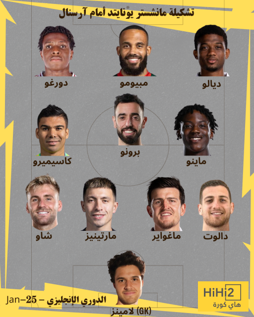 تشكيلة مانشستر يونايتد المتوقعة ضد أرسنال في الدوري الإنجليزي