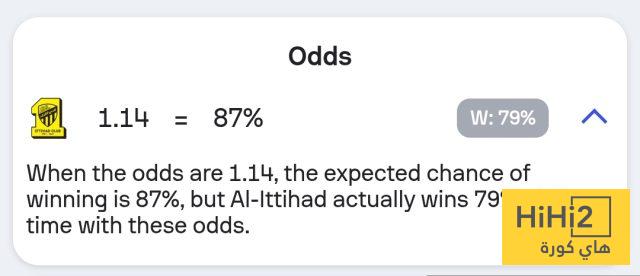 نسبة فوز الاتحاد في المباراة تصل إلى 79% ، فيما انقسمت الـ 21% المتبقية ما بين التعادل والهزيمة