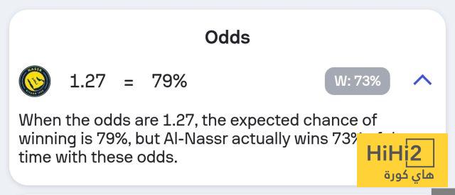 نسبة فوز النصر في المباراة تصل إلى 73% ، فيما انقسمت الـ 27% المتبقية ما بين التعادل والهزيمة