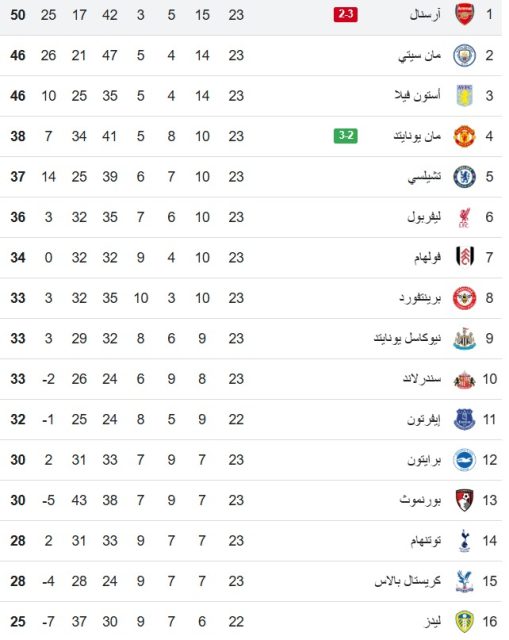 اليكم ترتيب البريميرليغ :