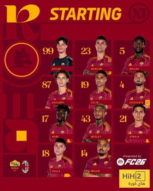 تشكيلة روما الرسمية ضد ميلان في الدوري الإيطالي